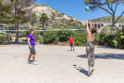Aufenthalt in einem Clubdorf am Mittelmeer mit Pool und Strand mit direktem Zugang zu Halb- oder Vollpension.