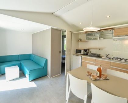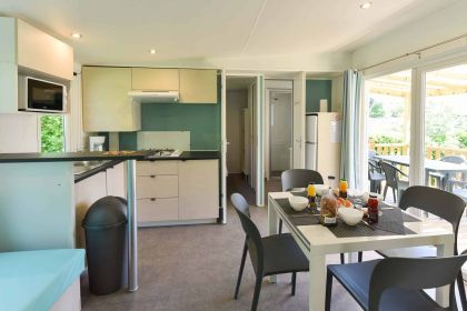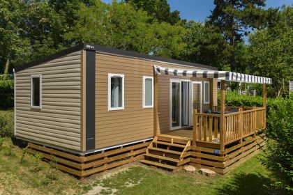 Genießen Sie mit Ihrer Familie den Aufenthalt auf dem Campingplatz Le Kergariou*** am Meer, in einem baumbestandenen Rahmen, in dem Geselligkeit und Ruhe herrschen.