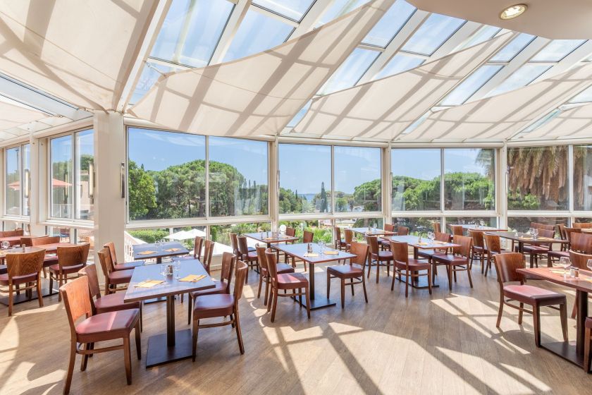 Vom Restaurant und seiner Terrasse aus können Sie den Panoramablick auf den 3 Hektar großen Park und das Meer genießen. Die Mahlzeiten werden in Buffetform angeboten, mit einer großen Auswahl an Gerichten, darunter auch regionale Spezialitäten, um die ganze Familie zufrieden zu stellen.