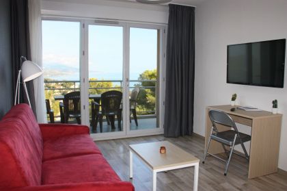 Les logements, des studios et des appartements spacieux avec cuisine équipée, salle d'eau, balcon ou terrasse, dans un bâtiment de 2 étages avec ascenseur. Depuis votre terrasse ou balcon, avec mobilier de jardin, vous admirez la vue splendide sur la baie de Roquebrune-Cap-Martin pour un bain de soleil au petit matin ou un coucher de soleil en fin de journée.